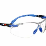 Safety Glasses, 3M, Solus, Clear, Black/Blue Frame. -Scotchgard Anti-Fog Coating -Clear lens is ideal for indoor applications requiring impact protection -Polycarbonate lenses absorb 99.9% of UVA and UVB rays -Luminous transmittance is 85% -Contemporary styling -Optional elastic strap -Padded, removable temples for added comfort -Meets the requirements of CSA Z94.3 and ANSI Z87.1