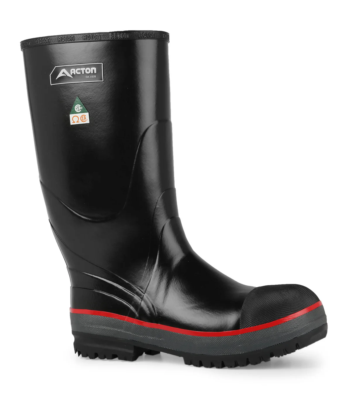 Boots, Shock Resistant, Rubber, Heavy Duty Cleated Soles And Heels,CSA Z195-14/ ASTM F2413-11, Knee Height, Size 8